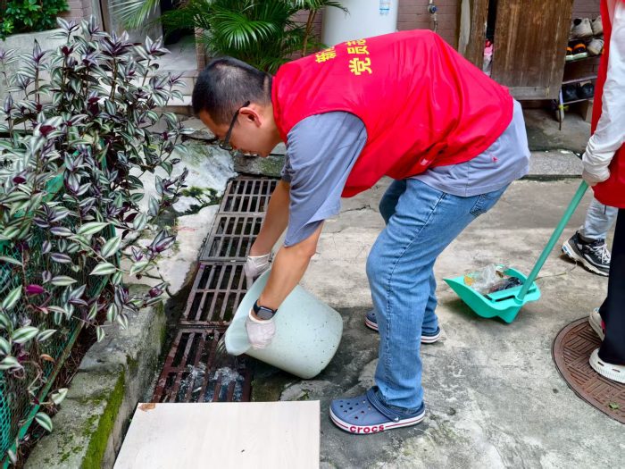 在天河区穗园社区、广州大道中社区、番禺区东怡社区等地,“广金先锋”志愿者积极协助清理废弃花盆、闲置轮胎等积水容器,并喷洒环保型灭蚊药剂,对社区卫生死角、下水道口等易滋生蚊虫区域进行全面排查,从源头上降低了蚊媒传染病传播风险。志愿者们的努力取得了显著效果,社区环境得到极大改善,卫生死角明显减少,积水容器基本清零,蚊虫滋生地得到有效控制。